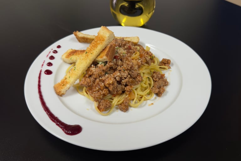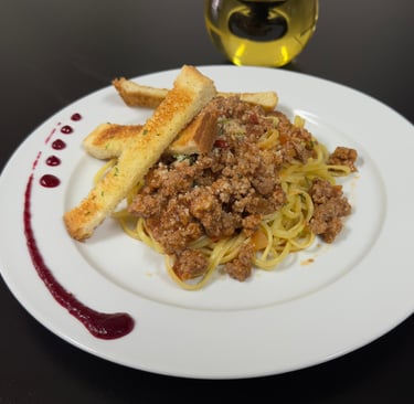 Pinto con huevos rancheros en salsa de tomate con cebolla y pimiento, disponibles en versión picante o sin picante.